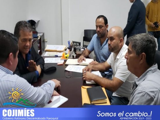 Luís Andrade García, presidente del Gobierno Parroquial de Cojimíes establece acciones junto a las autoridades del cantonales en bien de sus habitantes, Oscar Arcentales Nieto, alcalde de Pedernales junto a demás presidentes de las juntas parroquiales en reunión de trabajo se comprometieron a trabajar de manera conjunta para realizar temas de convenios priorizando las necesidades básicas del territorio.