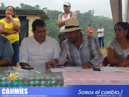 Leonardo Orlando Arteaga, prefecto de Manabí junto a Luís Andrade García, presidente del Gobierno Parroquial de Cojimíes ratifican el compromiso de intervención de más de 200 km de las vías rurales de varios sitios y comunidades de la parroquia; en la visita al sitio Chindulsito la población y representantes de varios sectores destacaron esta gestión que se ha emprendido cuyo objetivo es mejorar la economía y productividad.